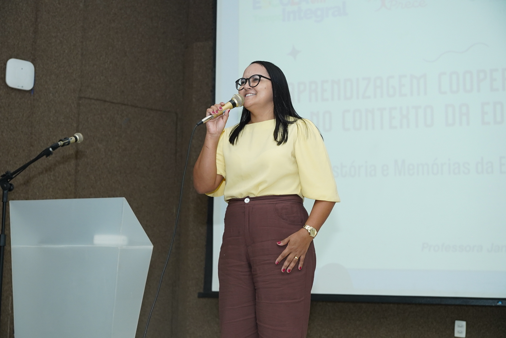 Após o café da manhã e a apresentação cultural, a agenda seguiu com a palestra da Prof.ª Alessania de Jesus. Ela compartilhou o relato de experiência: “Educação Integral antirracista: um diálogo a partir do chão da escola quilombola de Itamataiua/Alcântara”. Em seguida, os presentes participaram de uma atividade de reflexão sobre a política da educação integral.