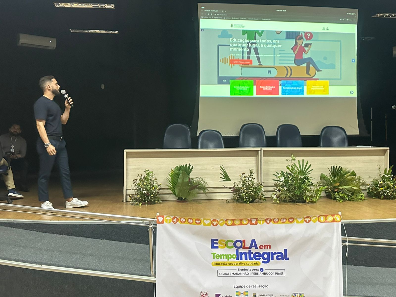 O segundo dia teve início pela manhã, com as falas da Profa. Gárdina Lima, coordenadora estadual do Programa ETI no Piauí, e do Prof. Manoel Andrade, coordenador geral do Programa de Educação Integral da UFC, que apresentou a proposta de Aprendizagem Cooperativa e Solidária no contexto da Educação Integral. Durante sua explanação, destacou a experiência do Movimento PRECE, desenvolvido há três décadas no município de Pentecoste, no Ceará.